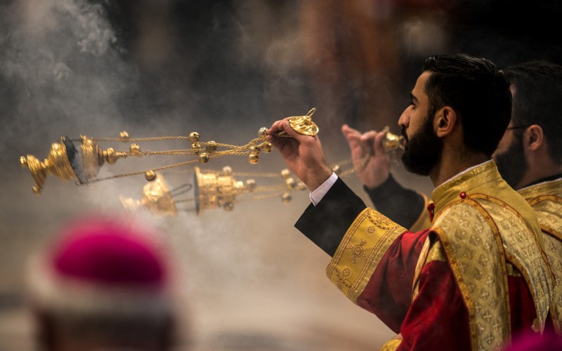 | Come in peace, priest, who carries a pure censer; its fragrance burns and the whole world delights in it. | ܬܳܐ ܒܰܫܠܳܡܳܐ ܟܳܗܢܳܐ ܕܰܛܥܺܝܢ ܦܺܝܪܡܳܐ ܕܰܟܝܳܐ ܃ ܘܡܰܥܛܰܪ ܪܺܝܚܶܗ ܘܰܡܒܰܣܶܡ ܠܶܗ ܠܥܳܠܡܳܐ ܡܶܢܶܗ ܀ |